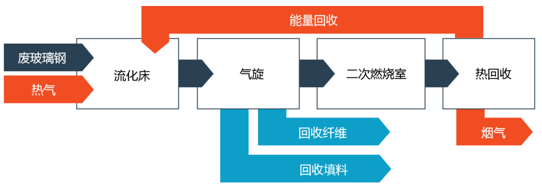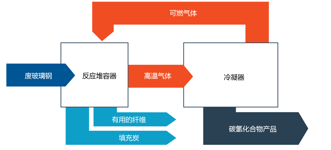热解是一种热回收技术,它以灰分的形式回收纤维,以碳氢化合物的形式回收树脂基体。尽管在各种工业化回收技术中,热解是对再生纤维价值损失最小的,但仍然存在价值损失。树脂基体被制成气或油,用作燃料或化学品。纤维表面常因高温而受损,导致力学性能下降。热解需要很高的投资和运行成本[25]。