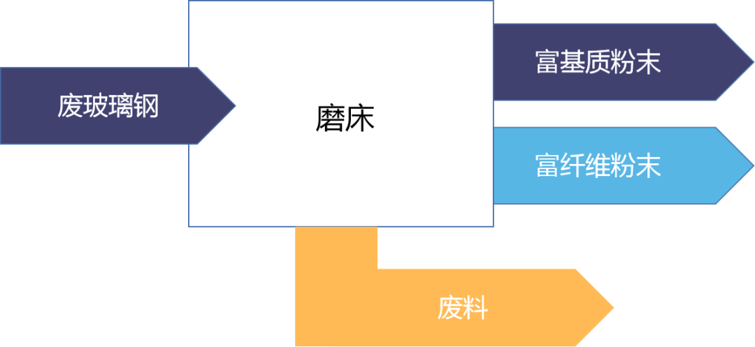 机械研磨由于其高效、低成本和低能耗而成为一种常用技术。但是,此方法却大大降低了回收材料的价值。用此方法回收的产品,短纤维和基体粉末可以分别用作增强材料或填充材料。对于在热固性复合材料中的应用,通常作为填充材料,由于机械性能的下降,填充材料的掺入量极为有限(小于10%)。对于在热塑性复合材料中的应用,通常作为增强材料,纤维成分的变化和树脂颗粒的污染等对增强热塑性树脂的制造速度和热塑性树脂的质量有负面影响。如果分离和拆卸过程得到升级,负面影响可以最小化,再生纤维的再利用一直可以用到完全没有保留价值的情况。