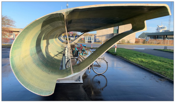 2.叶片的特定结构部件也可以重新用于建筑结构,例如自行车停放处[21], 桥梁(丹麦,尚未建造)[22],人行道,建筑再利用[23]等。