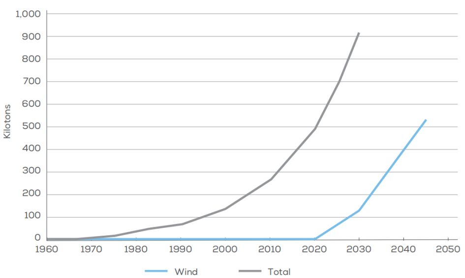 2.强调预期的复合材料废弃物量,包括风力涡轮机叶片废弃物;